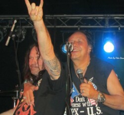 In 1984, Fryer recruited drummer Tommy Dimitroff (in replace of original drummer Ronnie Zade) and returned to America to reform Heaven, this time with ex-Talas guitarist Mitch Perry and New York City musician Mark Cunningham who had most recently been in a band called Cathedral. Dennis Feldman, formerly of Ram-Jam and The Michael Schenker group also joined the new Heaven line-up on bass and the group recorded the album. Columbia A&R man, Mason Munoz, signed the band and recruited Paul O’Neill to produce and co-write the album Knocking on Heaven’s Door. The album’s title track was a heavy metal cover of the Bob Dylan song. However prior to completion, Munoz was replaced by a new A&R representative and Columbia brought in another mixer. After this, Fryer moved to Texas and forged ahead keeping the Heaven name alive with local talent such as Guitarist Perry Parris, Scott Howe, John Paul Dutton, Rodger “bam-bam” Weiss, Bryan Cameron and Timi Heiser. Nye Jones, Scott Cothren and Steve Dainhart recorded Time For Terror. The players from Austin Texas also recorded on the Mötley Crüe Tribute CD Home Sweet Home and was the number one voted song on the CD. The song was written by Allan Fryer and Tommy Lee and dedicated to Vince Neils’ daughter, Skylar Neil who died from cancer. All the CD proceeds went to the Skylar Neil Memorial Fund. On 4 June 2015 it was announced that Heaven’s vocalist, Allan Fryer, had died after a long battle with cancer. He was survived by his daughter, Kallan and four grandchildren.